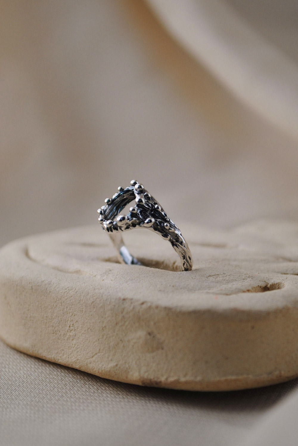 Anillo de plata de ley 925 texturizado con acabados en óxido y plata brillante. Aira es un diseño original y una pieza única, no hay dos igual.