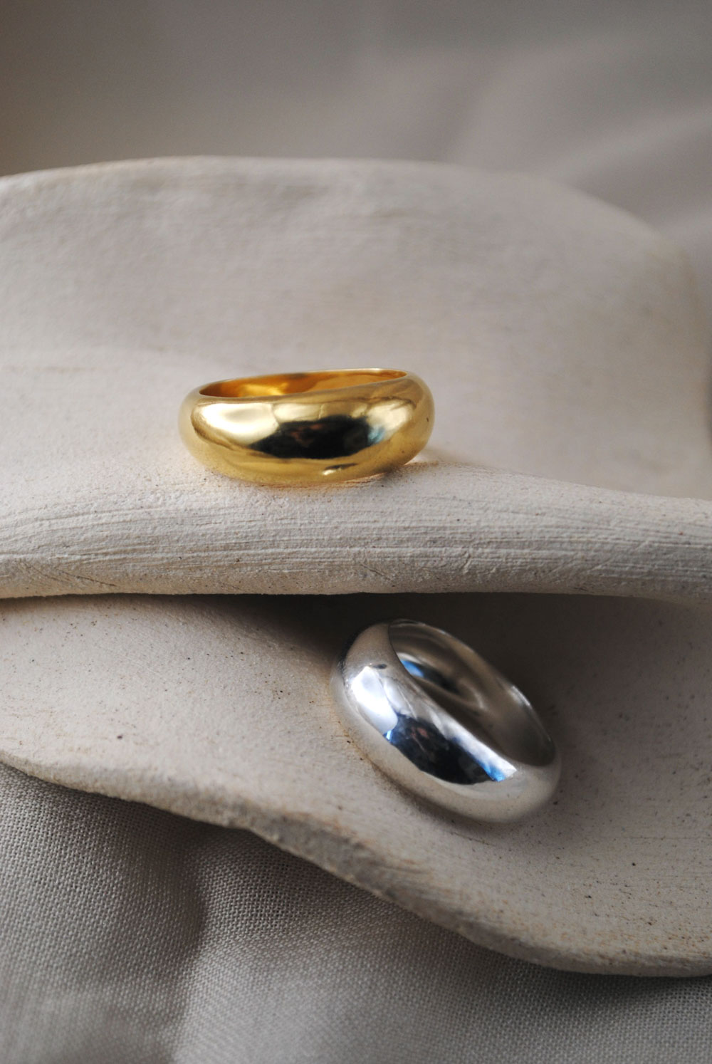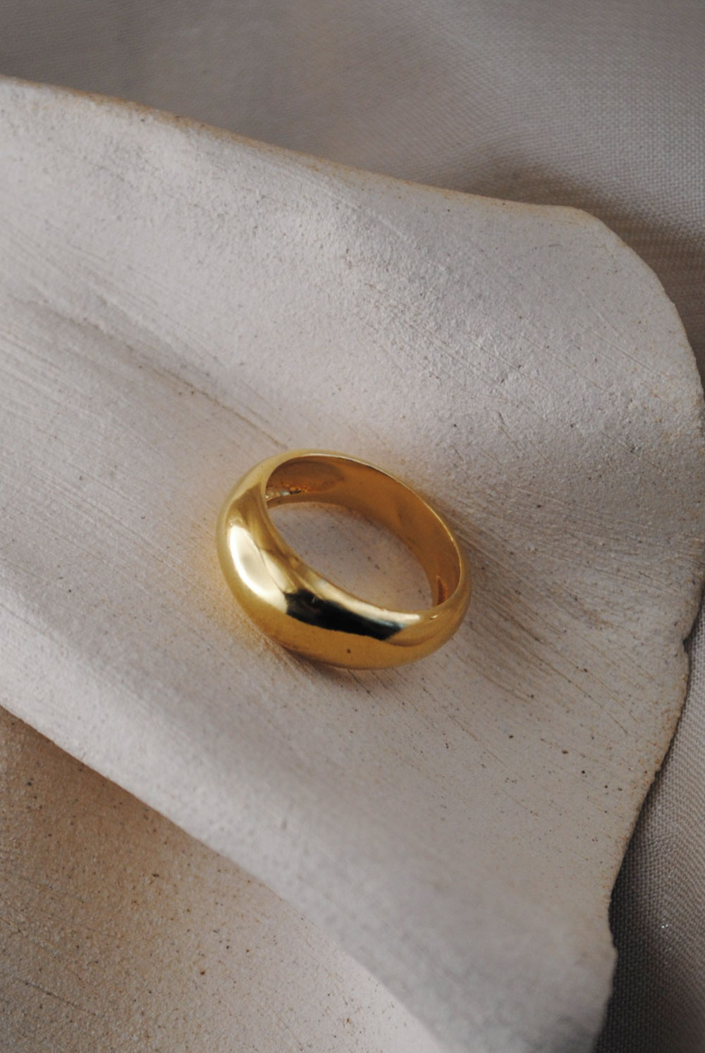 Este anillo de diseño bombé es una pieza de joyería clásica y atemporal. Su forma curva y abombada, característica del estilo bombé, le otorga un aspecto suave y elegante que resalta por su sencillez. Hecho de plata pulida, este anillo refleja la luz con un brillo sutil, lo que añade un toque de sofisticación a su diseño robusto. Disponible en plata de ley 925 bañada en oro.