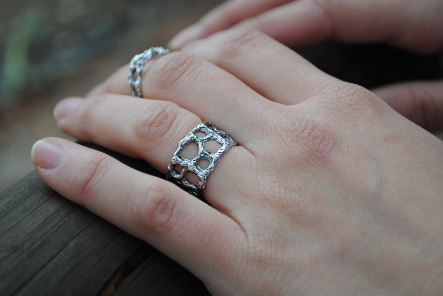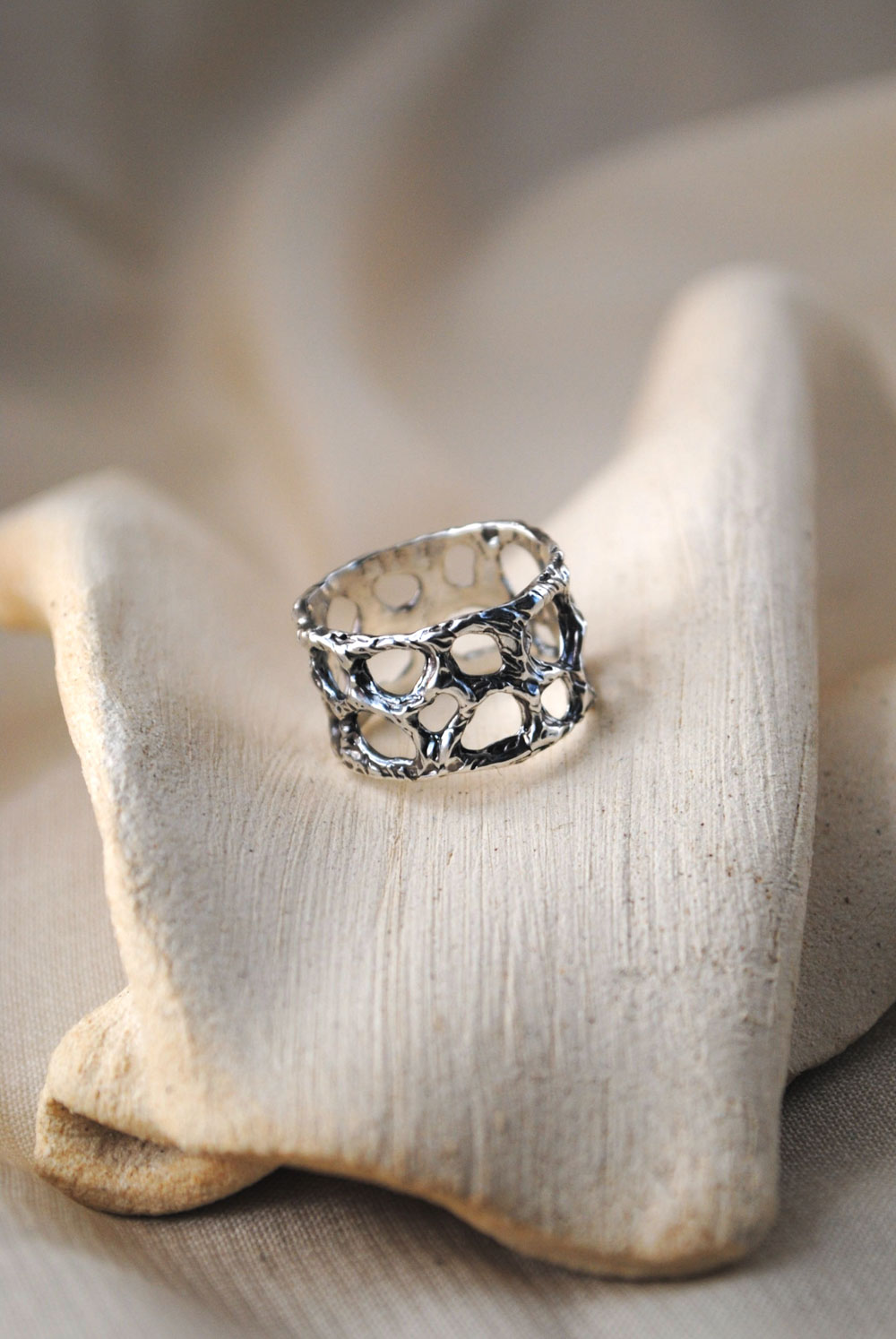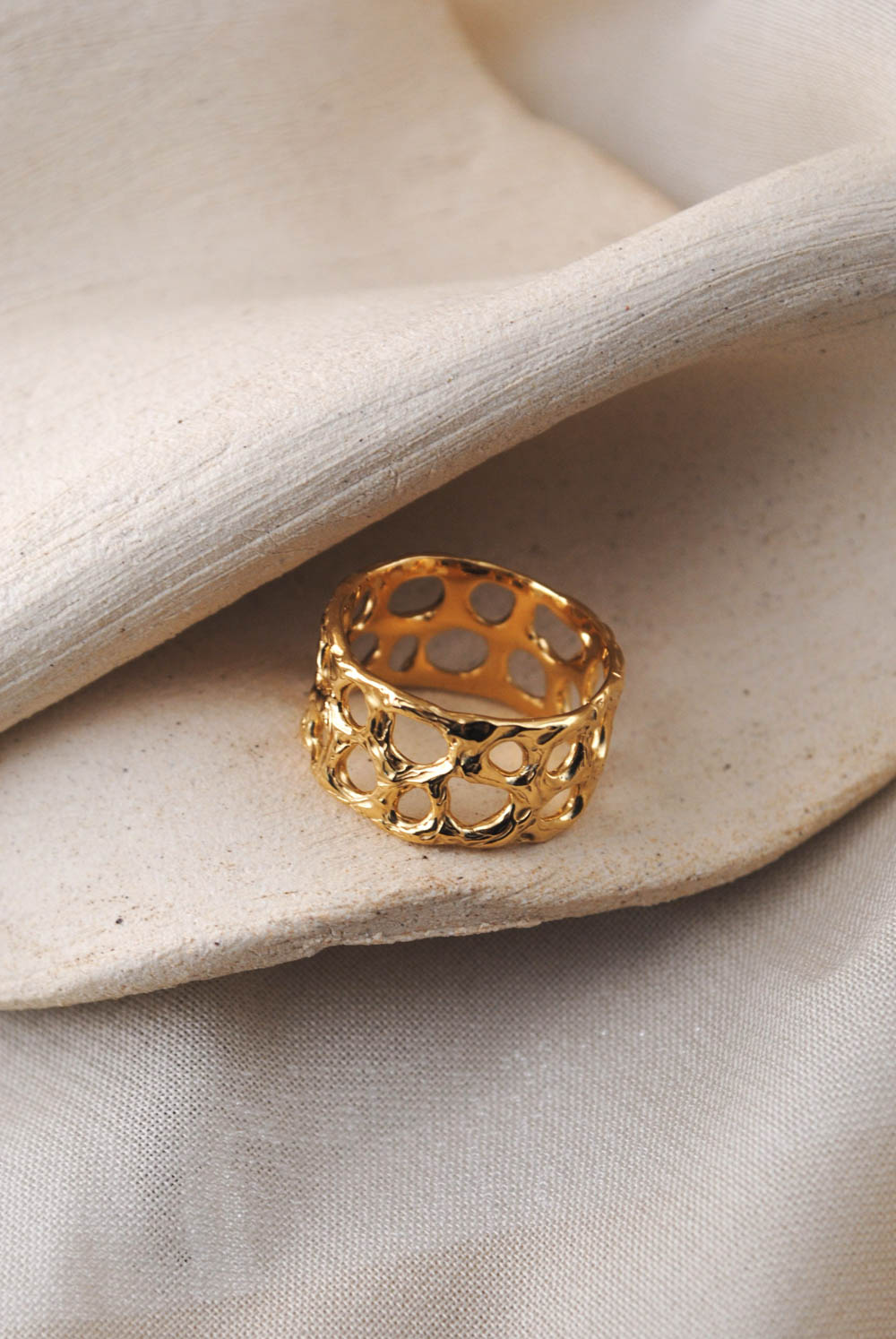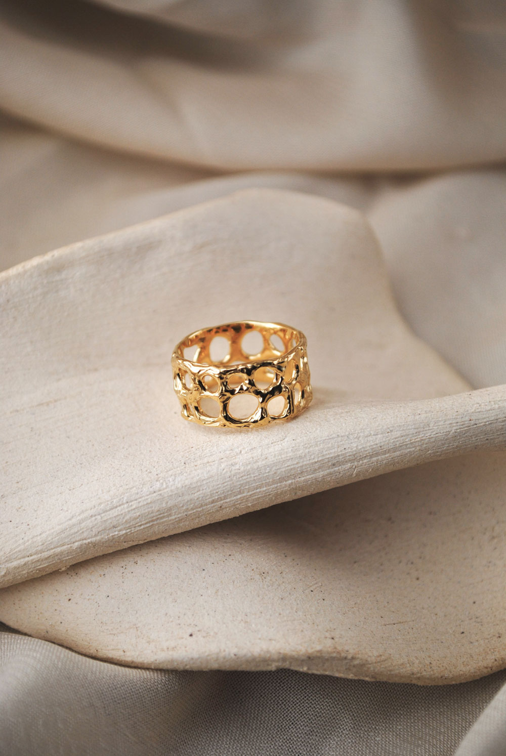 Anillo de banda realizado artesanalmente en plata de ley 925. Es un diseño calado con texturas magmáticas y acabados en óxido. También está disponible en plata de ley 925 con baño de oro. Este diseño no se encuentra en stock, se realiza de manera personalizada bajo pedido por el cliente por lo que debido a los ritmos del taller podrá tardar entre 2 a 3 semanas contando con el envío en llegar a tus manos. Cada anillo Galeras es único e irrepetible y los dibujos de sus texturas serán diferentes en cada pieza.