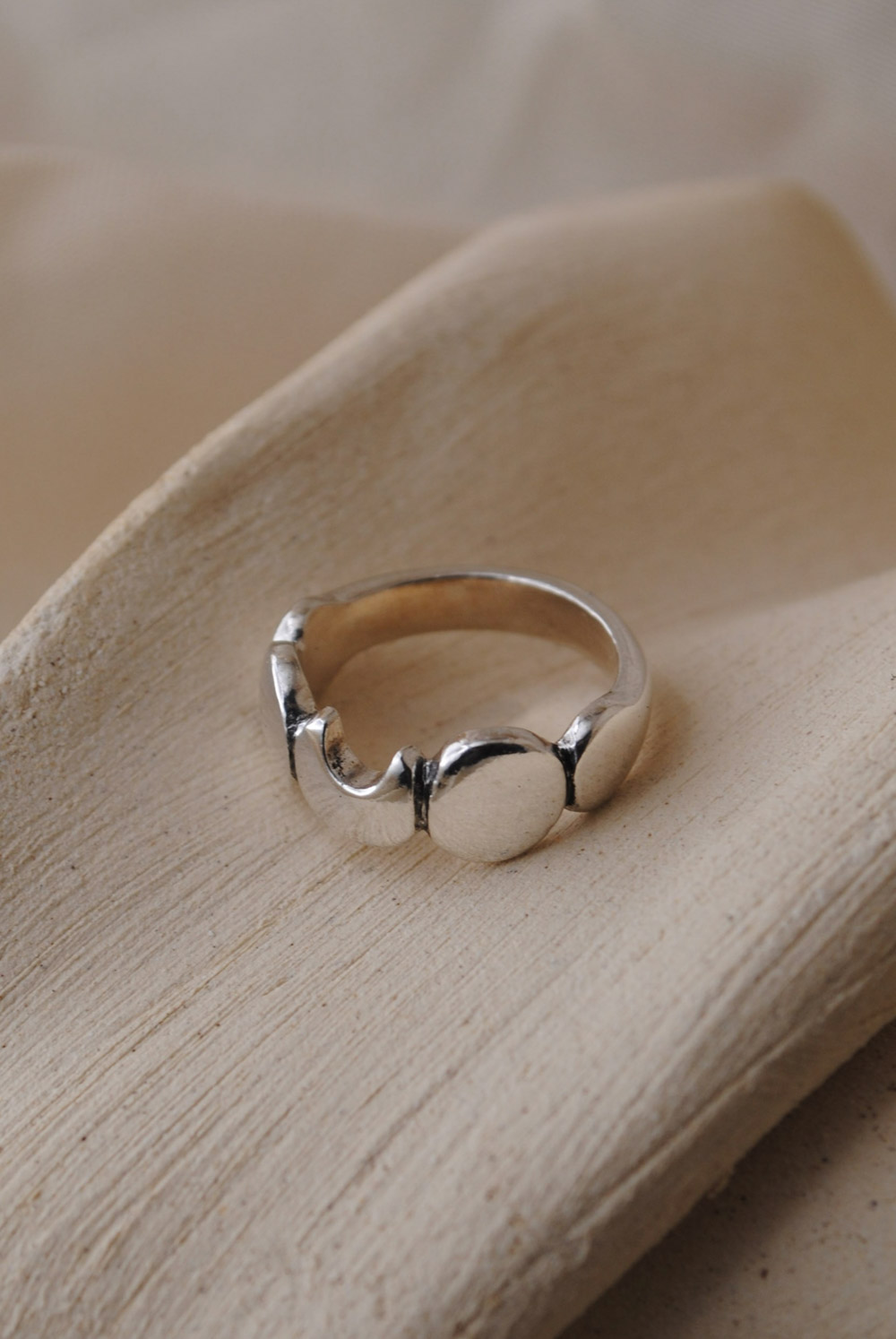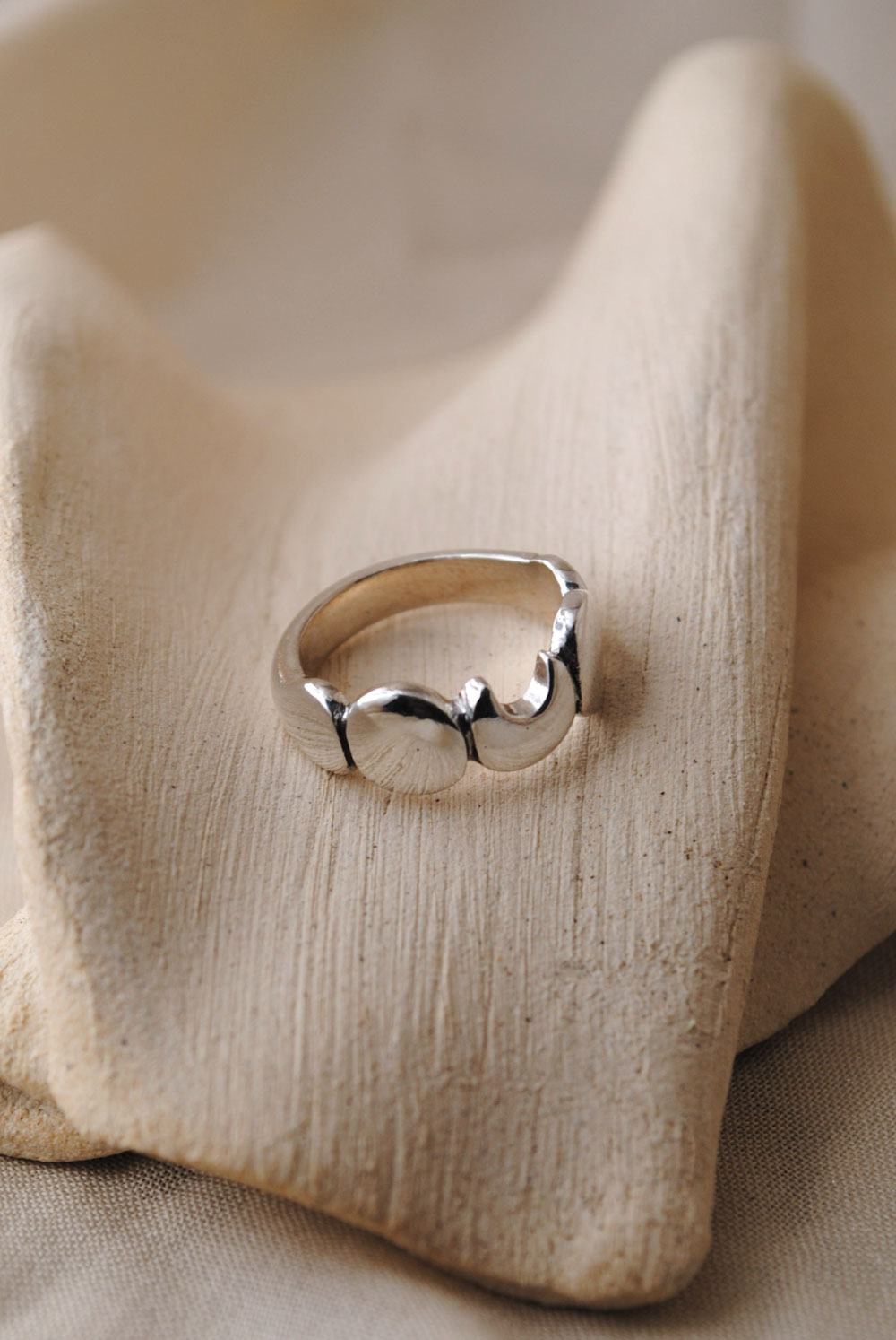 Anillo de plata de ley 925 modelado y trabajado artesanalmente. Este anillo es un diseño original y una pieza única, no hay dos iguales.