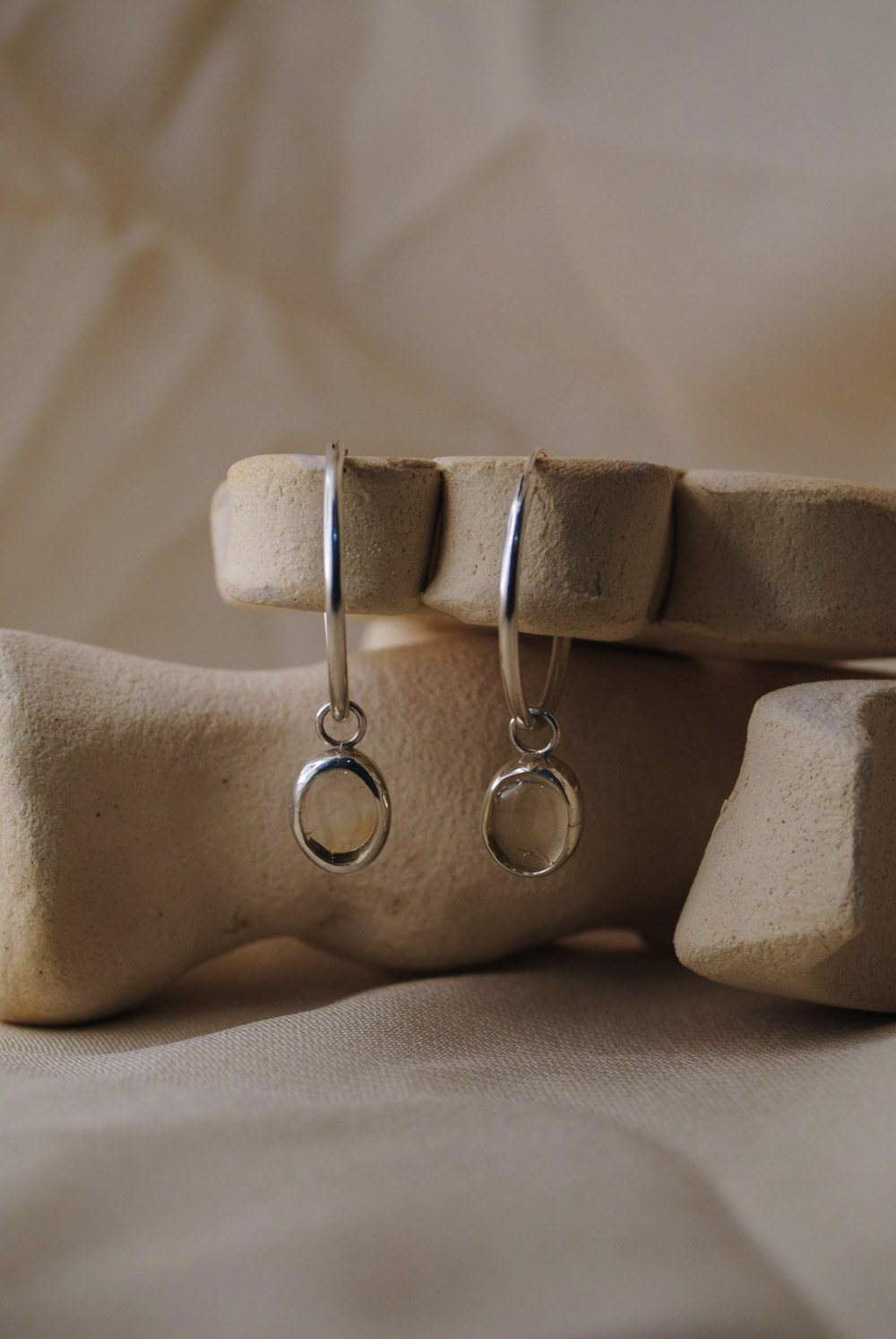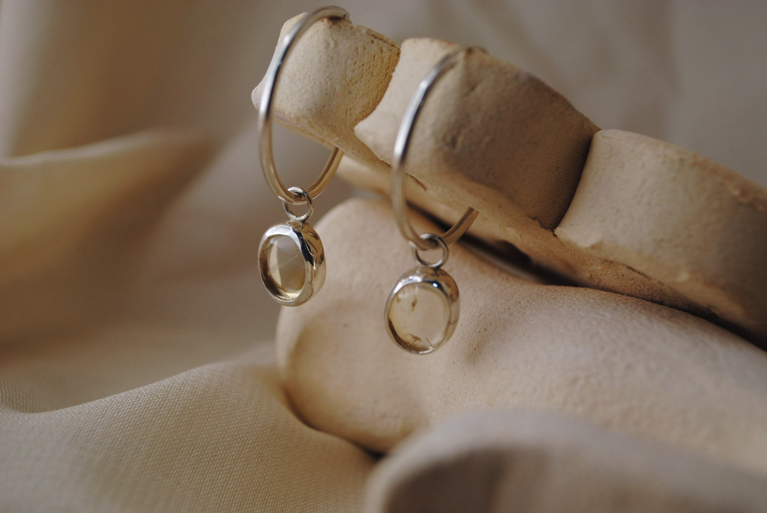 Pendientes de aro cerrados con dos cabujones de cuarzo citrino. El diseño abierto de las monturas deja pasar la luz a través de las piedras resaltando toda su belleza. Citrino es un diseño original y una pieza única, no hay dos iguales. Si te ha gustado este diseño y te gustaría verlo con otras piedras, puedes realizar un encargo personalizado y lo diseñamos juntas.