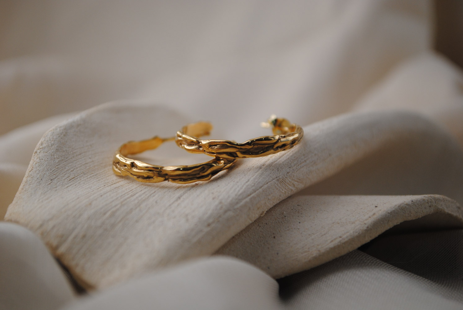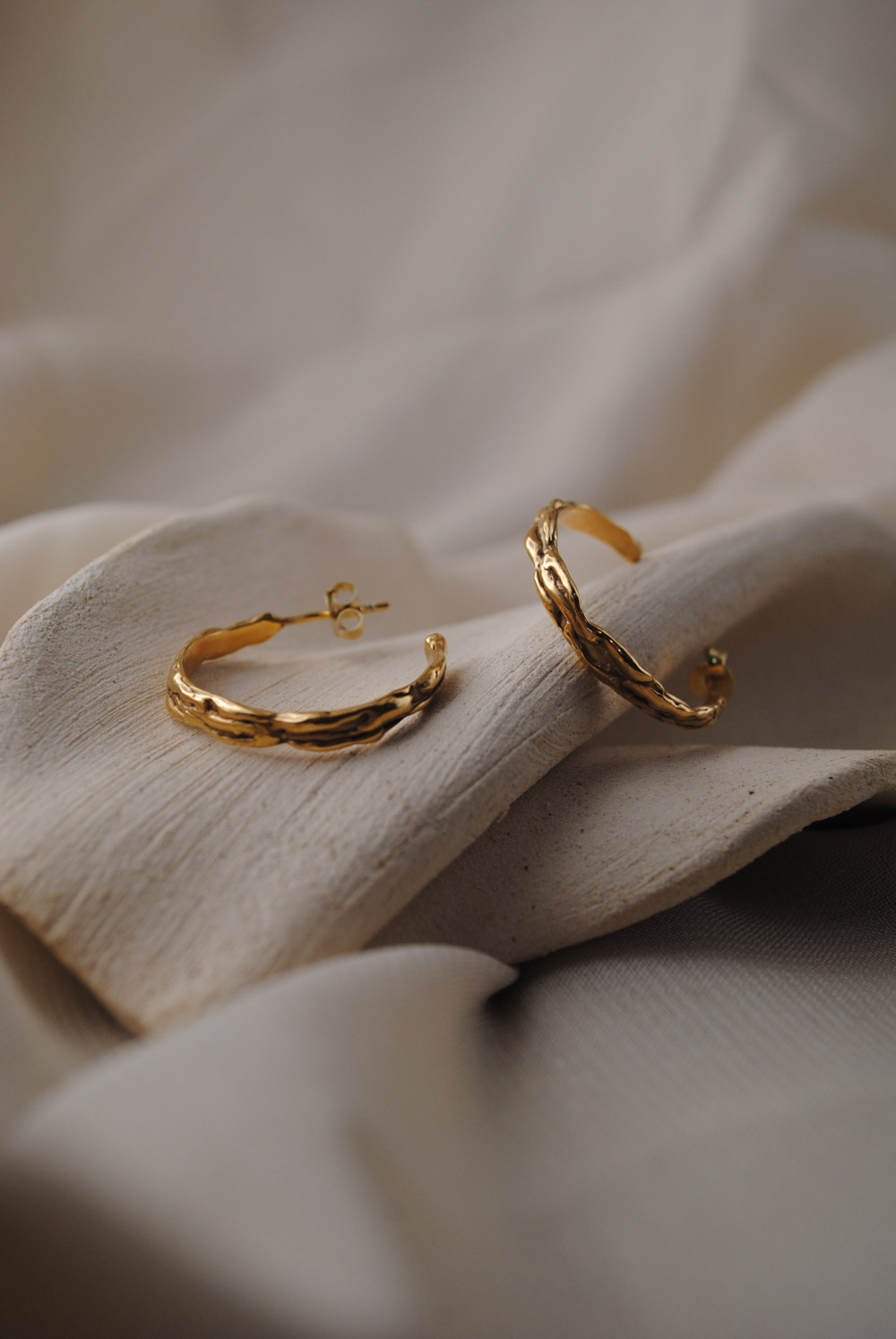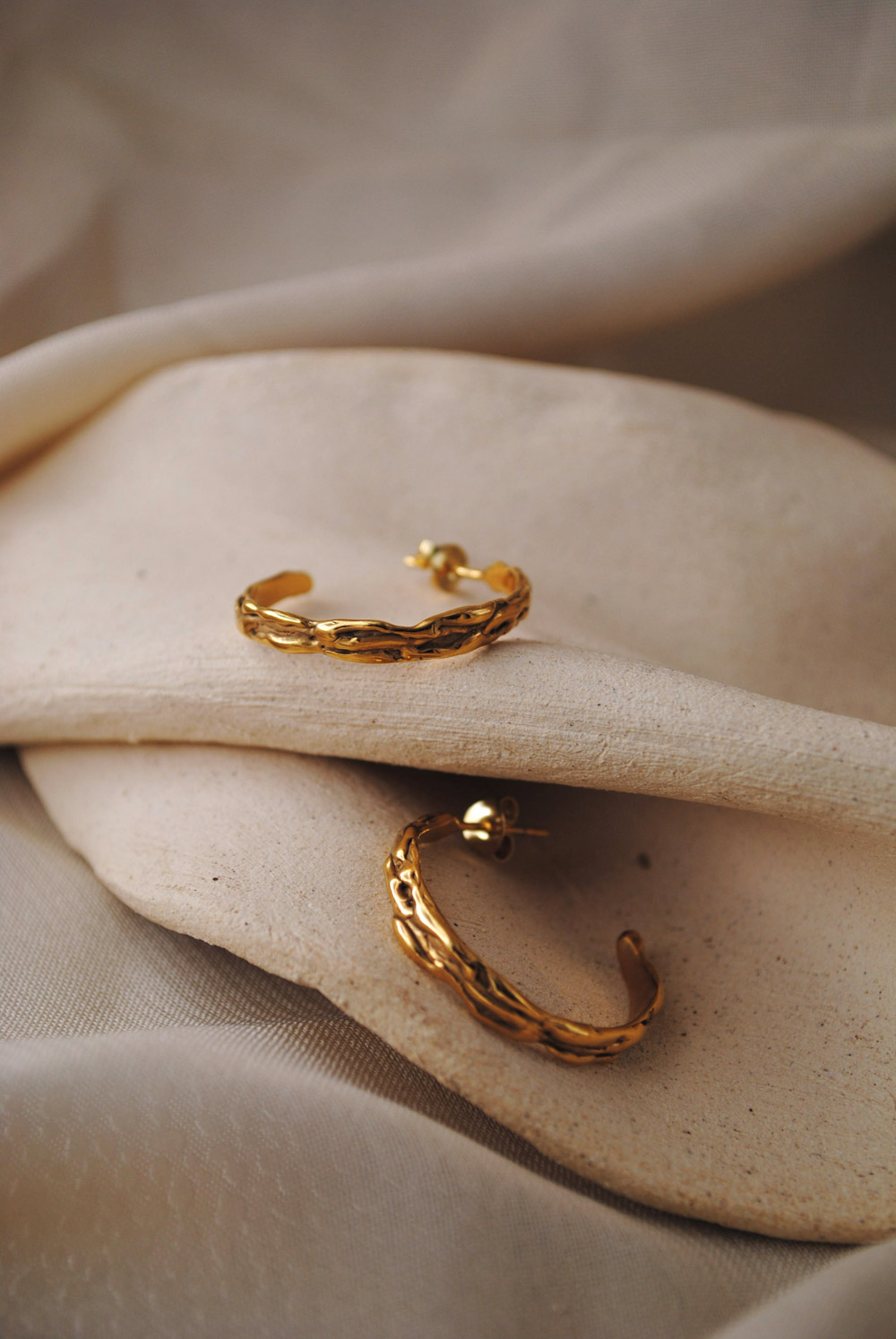 Pendientes con cierre de presión. Estos pendientes presentan un diseño escultórico en plata, con una forma orgánica que recuerda a las cavidades naturales de una piedra erosionada. Su superficie suavemente curvada está perforada por aberturas asimétricas, creando un interesante juego de luces y sombras. El tamaño compacto de los pendientes se adapta perfectamente al lóbulo.. Disponibles en plata 925 con acabados en óxido o latón bañado en 2 micras de oro.