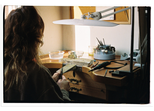 Me fascinan las piedras y los metales por su origen natural, por las texturas, colores y formas únicas que la tierra nos ofrece. Cada proceso, desde los bocetos iniciales y la selección de las piedras hasta el minucioso trabajo del metal, es una forma de conectar con algo más grande.
